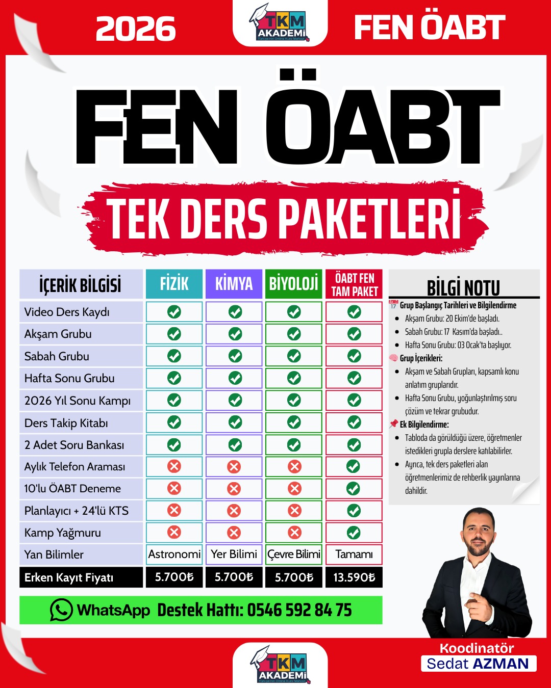 | Teknik Destek: | Canlı dersler esnasında teknik birimimiz derslerde oluşabilecek aksaklık için takip sağlamaktadır. Dersler başladıktan sonra tarafınıza iletilecek WhatsApp Teknik Destek Hattı üzerinden ilgili sorularınıza cevap ve yardım alabilirsiniz. |
